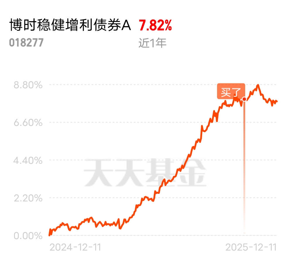 股市震荡时,抗波动就尤为重要了,低波固收+是当下不错的选择。以$博时稳健增利债券A$ 为例,它通过灵活的资产配置,在控制风险的同时提升了收益空间,近半年收益率达到了4.9%,业绩排名同类前列。12月15日全面降准0.5个百分点将正式落地,预计释放长期资金1.2万亿元!这次降准是中央经济工作会议后首个重大货币政策工具,力度超预期,而且精准对冲了12月MLF到期压力,补充了银行长期低成本资金。对债市来说,降准意味着市场利率会进一步下行,而博时稳健增利持仓的高等级信用债和利率债,对利率变化特别敏感,利率下行会直接提升债券价格,为产品净值提供坚实支撑。其权益仓位的表现同样表现亮眼,产品的转债持仓重点布局了红利板块,最近刚好赶上央国企改革深化、市值管理推进的政策东风。2025年券商策略普遍看好具备稳健盈利能力、低估值和高股息优势的央国企板块,像国有大行、核电、航运物流等红利品种,成为机构重点配置的方向。这基持有的相关红利转债,最近跟着板块一起走强,既享受了债券的固定收益,又吃到了红利板块估值修复的红利。红利板块的优势在于防御性强,在A股3800点震荡的背景下,能有效对冲市场波动,而转债的形式又保留了上涨弹性,这“防御+进攻”的组合,让收益更有保障。#【跨年坦白局】提问金梓才、陈果#