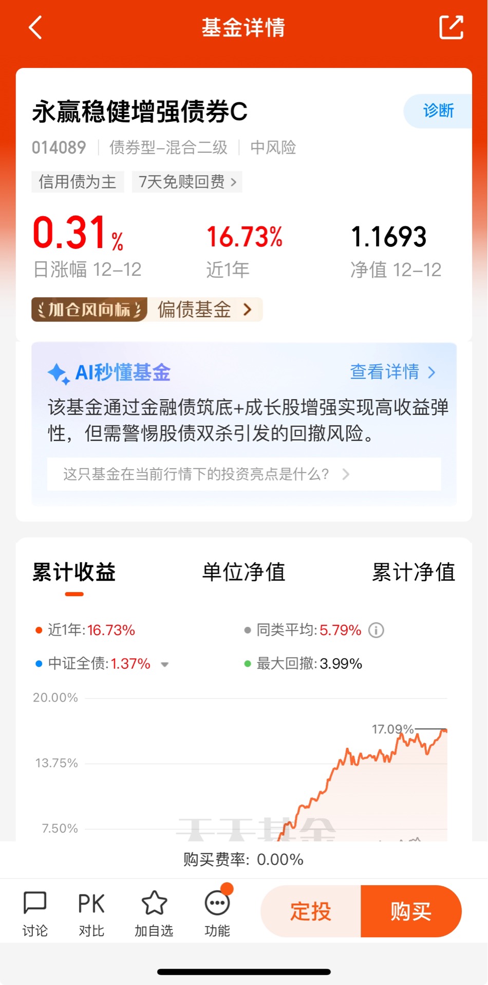 $永赢稳健增强债券C$今天很不错收31个蛋,近一个月收82个蛋,近3个月收202