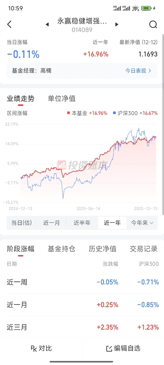最近行情震荡,说实话真的不知道该买什么了呀!感觉后续行情还是要稳妥一些,所以我今天计划配置些稳健类基金,永赢稳健增强C014089不错,近六个月下蛋1068个,近一年下蛋1670个,持仓有债有股,既能分享股市红利还可以做到债券缓冲。