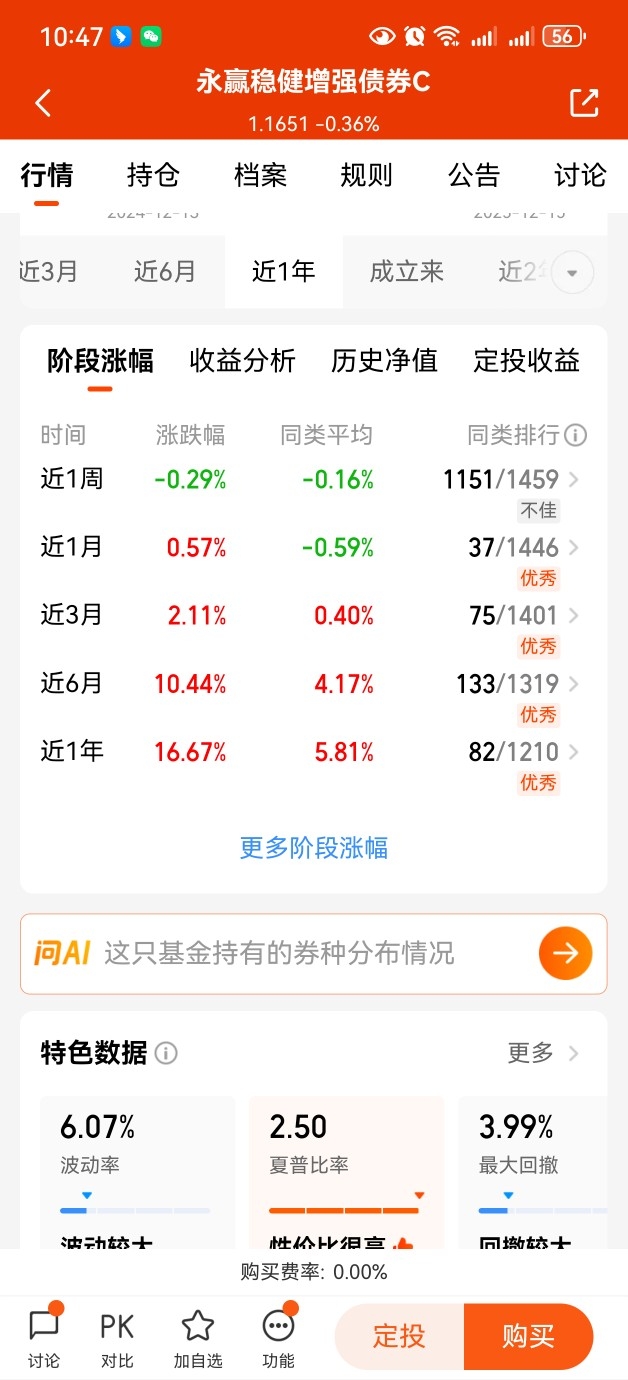 债基长期向上趋势不变,纯债资产收益空间持续收窄,市场资金都在加速转向兼具安全垫与收益弹性的“固收+”,趁着调整正好跟上$永赢稳健增强债券C$ ,近六个月涨幅+10.44%,近一年涨幅更是高达+16.67%,弹性还不错呢,用来均衡配置我看行。#茅台批价两日涨近百元!白酒挤泡沫结束?#