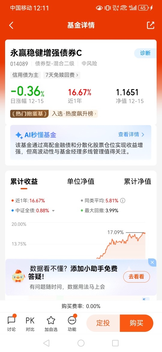 $永赢稳健增强债券C$ 是一只典型的股债混合偏债的固收加基金,主要以信用债为主,加上利率债做波段增加收益,还有少量的可转债和股票增厚收益,这样的配置策略可以说进可攻退可守咯!永赢稳健增强近一年收下1667个蛋,各个阶段业绩表现优秀亮眼的很了!#消费板块利好不断!投资机会如何寻找?#