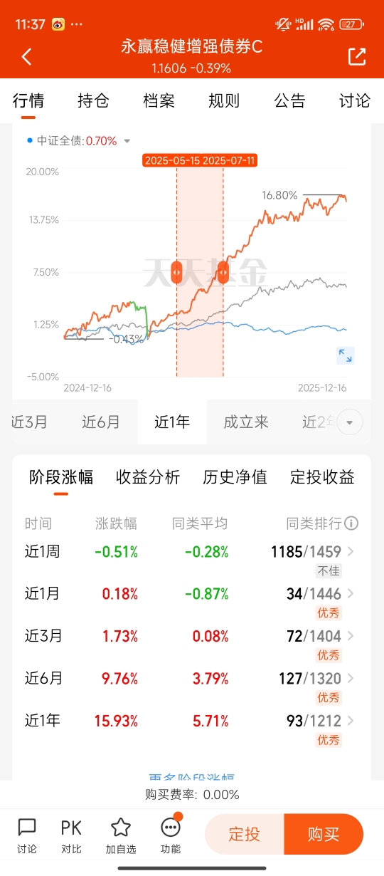 #锂价狂飙!能源金属归来?# 七免的固收债基$永赢稳健增强债券C$ 近半年收益9.76%。近一年涨幅达到15.93%。采用股债双驱的策略,以高等级信用债打底筑牢收益,叠加成长股精准增强,权益动态择时超额业绩凸显,稳健+弹性优势表现出色,是低利率时代求稳增值的优质选择!
