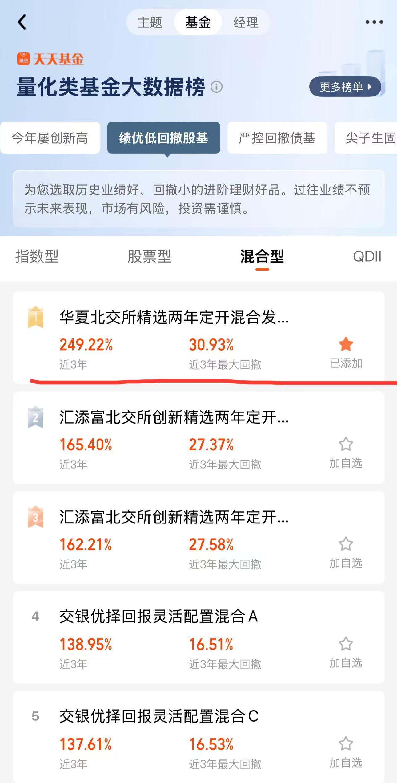 北交所布局的都是专精特新企业,近三年这里收益249%+,更是跑赢北证50指数200%+,超额收益显著,开放以来连续霸榜绩优低回撤股基榜单第1,$华夏北交所精选两年定开混合发起式$错过今天还要等2年才能再开放呢。