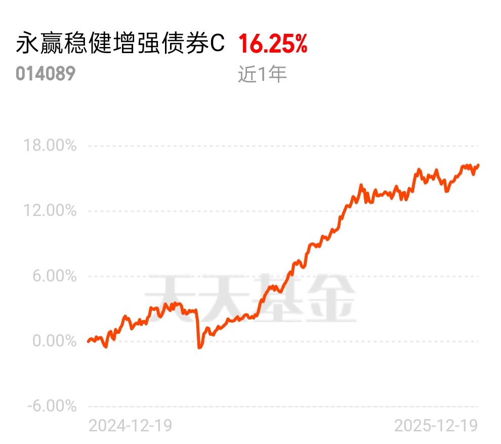 最近稳健增强应该可以逆市收蛋,近一年走势也非常丝滑,业绩平稳增长,看历史净值,妥妥的涨多跌少,近一年涨幅已经高达16.25%,妥妥地能攒钱。