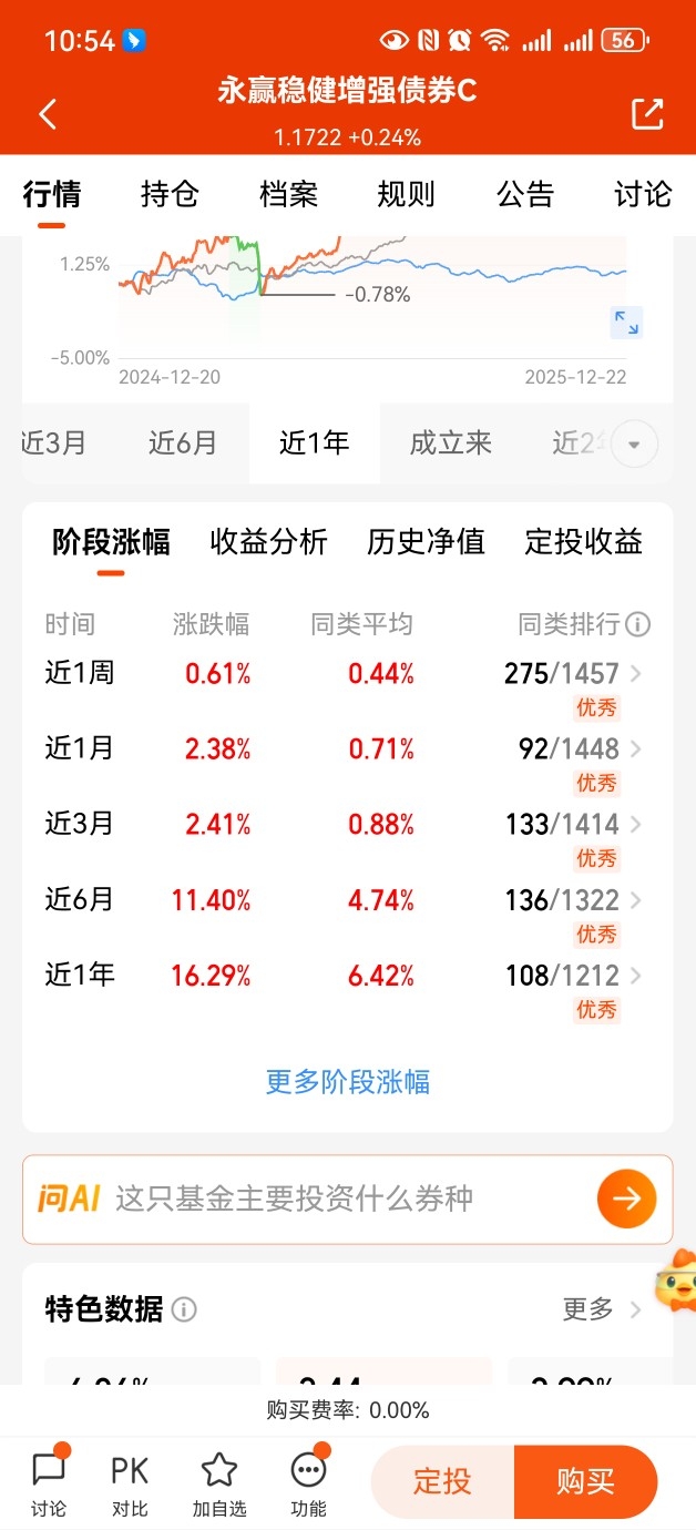 $永赢稳健增强债券C$ 昨天收24个蛋,已经连续两天上涨,两天涨幅50个蛋,弹性还挺强。产品采用债打底、股增强的模式,充分利用大类资产配置的优势,债券类资产贡献较为稳定的基础收益,同时把握股市机会,追求风险可控的长期回报,近六个月收1140个蛋,近一年收1629个蛋,弹性十足哇!#现货黄金创历史新高!你上车了吗?#