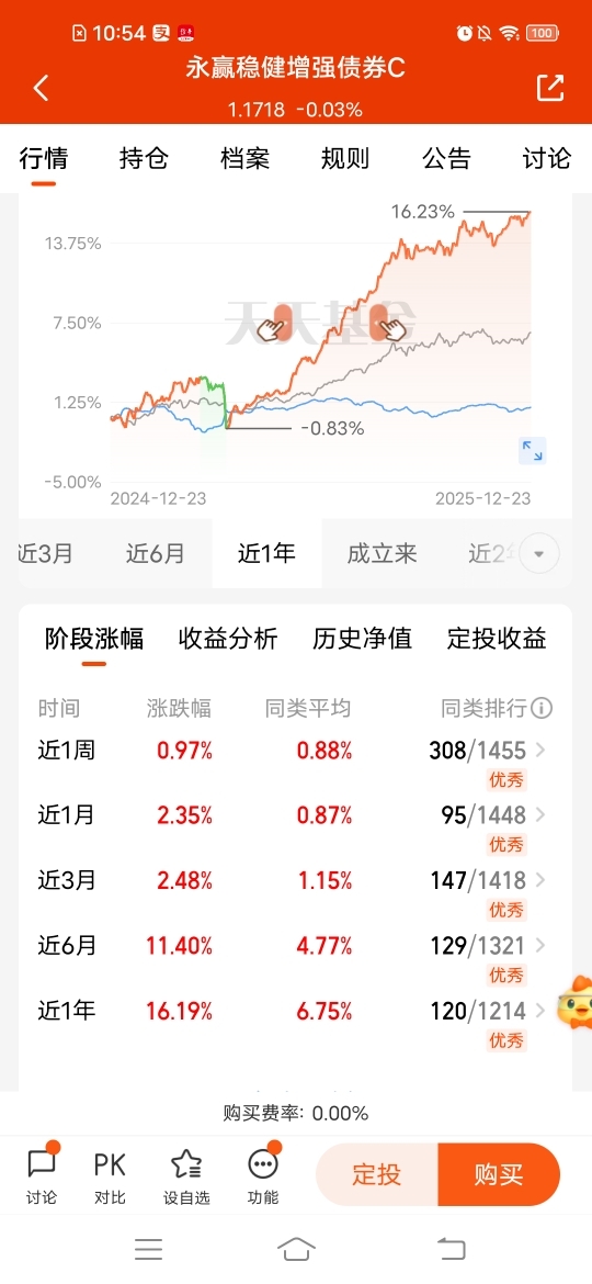 $永赢稳健增强债券C$ 近一周收97个蛋,近三个月收248个蛋,近半年收1140个蛋,近一年收1619个蛋,同类排名靠前,收蛋能力不错,中长期更有优势,只配置权益风险大,近期行情震荡,增加固收+配置,债券打底,让你的收益稳一点,较高仓位债券打底,再配置一定股票来增强收益,进退皆宜。#挖掘超额收益#