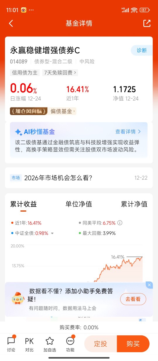 各个阶段都有大涨幅业绩的$永赢稳健增强债券C$昨晚6颗蛋到手。近一周43颗蛋。近