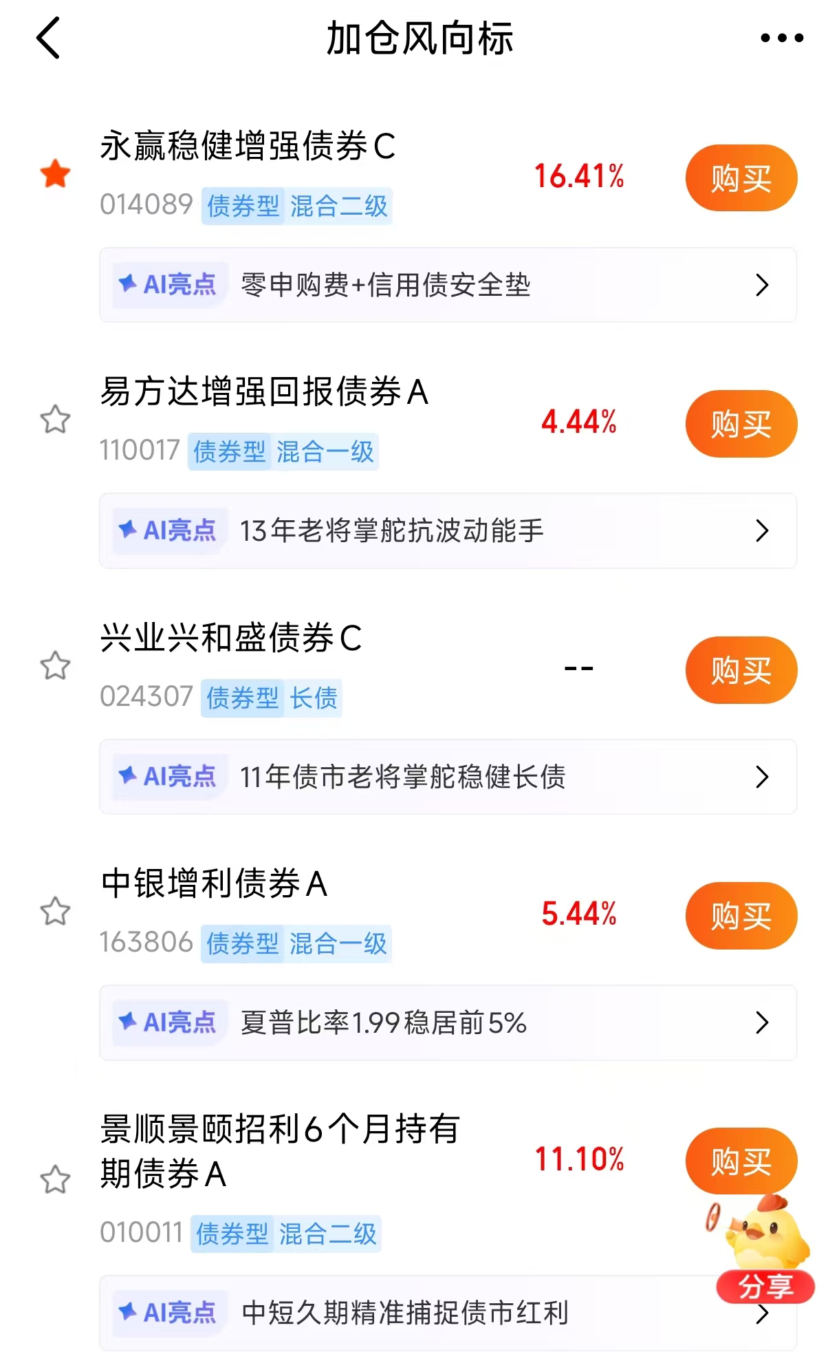 临近年末,A股市场行情波动性增大,资金对于股债兼顾的固收加关注度提升。其中绩优产品$永赢稳健增强债券C$ (014089)持续走高,昨天稳稳再收6蛋。同时其也进入了加仓榜,资金关注度持续提升。