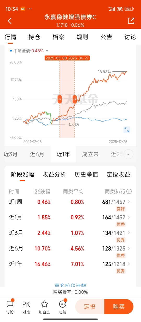 年底行情,一步步走的稳一点就行。不求大富大贵,稳中有升的$永赢稳健增强债券C$近