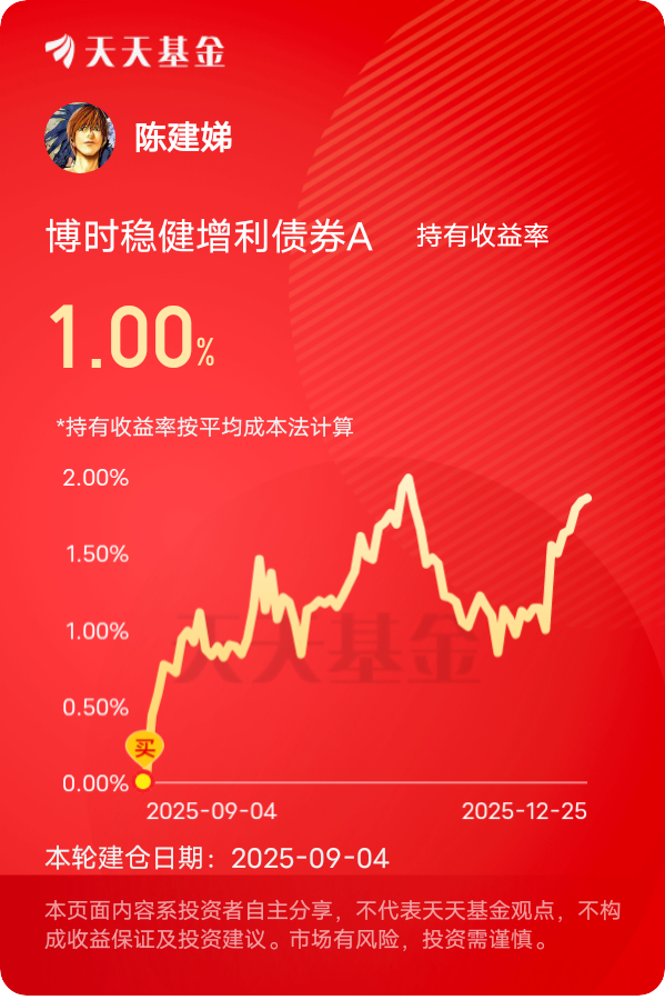 债市一起伏,就显出$博时稳健增利债券A$ 的优势了,债券选得稳,权益加得巧,昨天逆风拿下3个蛋,近一年有超过8%的回报,不得不服。央行年末加码流动性呵护和信用债风险管控升级,12月25日开展4000亿元MLF超额续作,还搭配1771亿元逆回购,单日净投放1888亿元,资金面持续宽松直接压低了利率债收益率,对这基持仓的高等级信用债和利率债来说是重大利好。另外,12月24日上交所发布债券受托管理指南,强化主动信用管理,而这只基金的债券持仓以AAA级信用债为主,还配置了不少政策性金融债,信用风险控制得特别严,在信用债市场规范化的背景下,净值更有保障,最近连续收蛋就是最好的证明。加上这基的权益仓位简直是隐形加分项,精准踩中了当下最火的光刻机赛道!光刻机作为半导体产业链的核心设备,国产替代空间巨大,近期板块内多只个股20CM涨停,行情特别火爆。这基布局的中芯国际、北方华创这些半导体设备龙头股,既能享受光刻机板块的高景气收益,又不会因为仓位过高承受太大波动。发现还有个小惊喜,现在搜索“博时固收”能领20元优惠券,相当于白捡的羊毛。#白银LOF溢价近70%临停,套利风险激增# #晒收益#