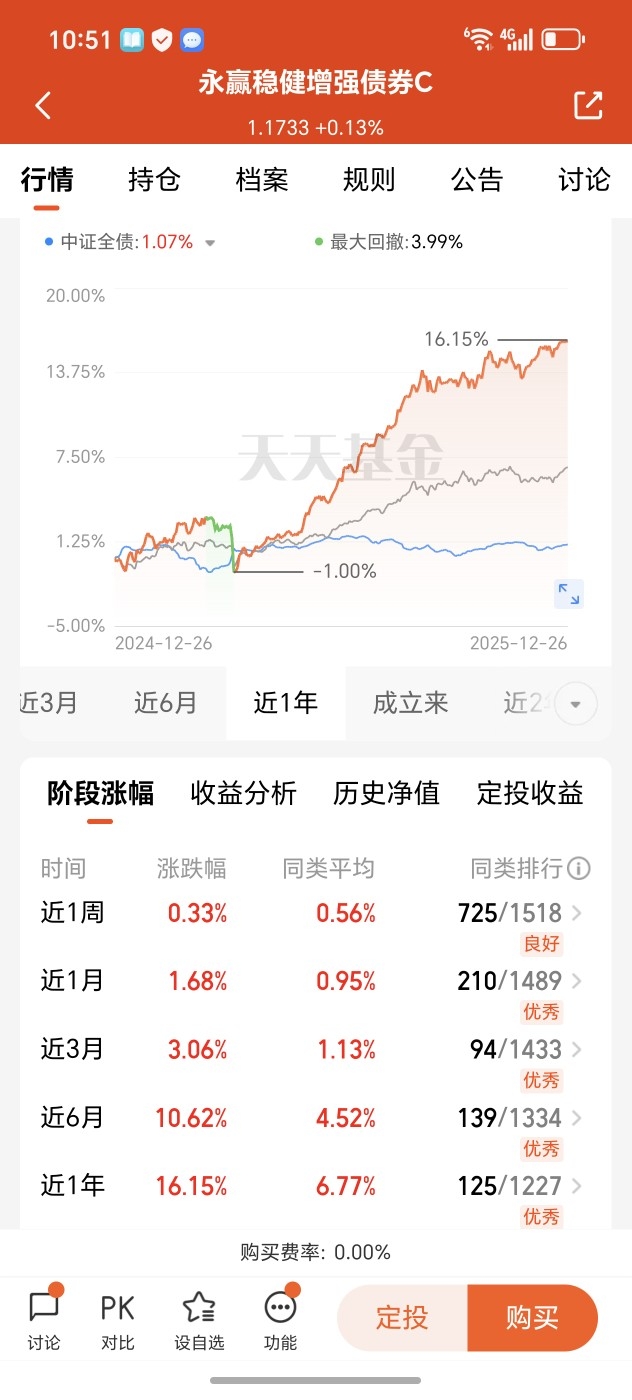 攻守兼备的固收+$永赢稳健增强债券C$近一个月收168个蛋,近六个月收1062个