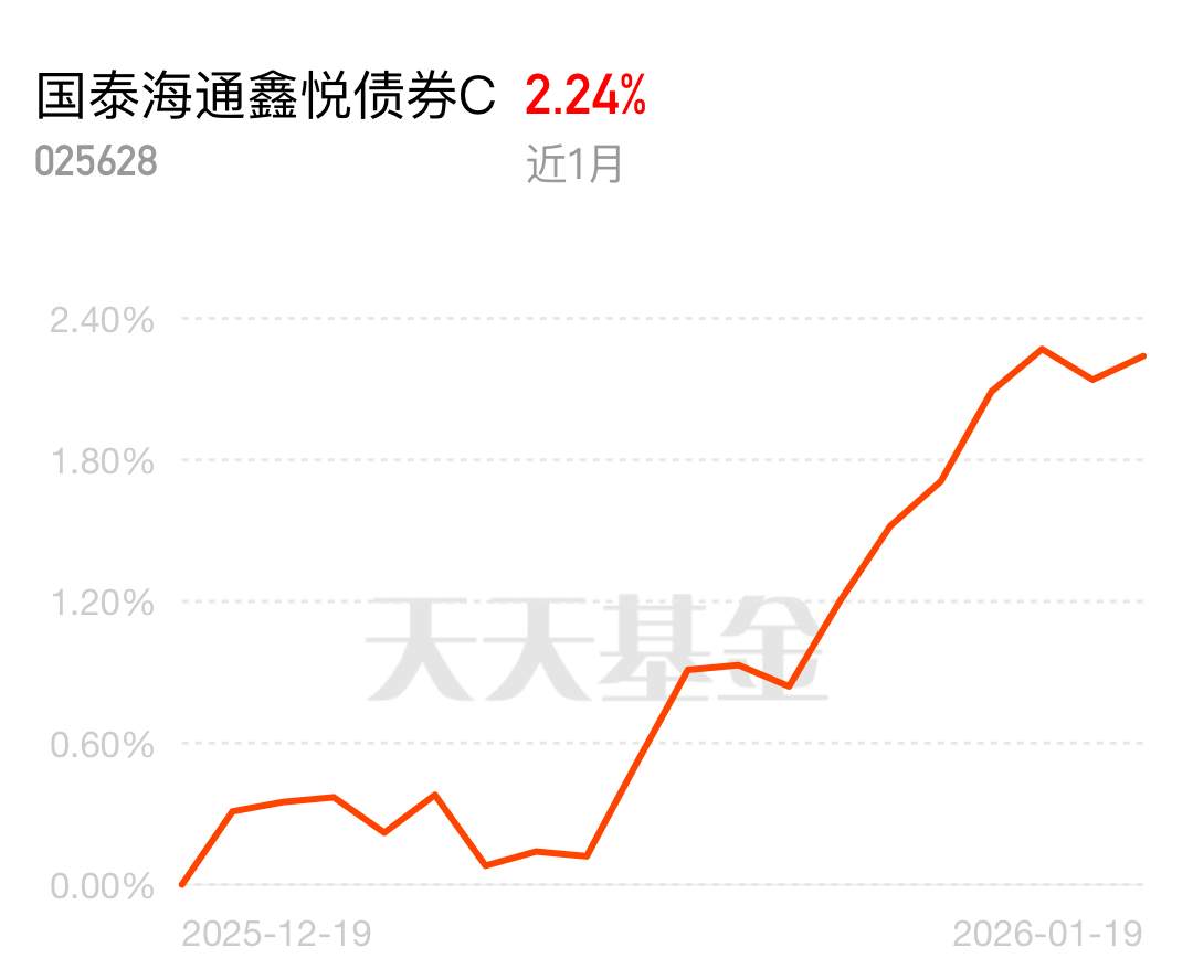 纯债基金收益跟不上?换国泰海通鑫悦债券C!配置了暴涨的贵金属,近一个月224个蛋