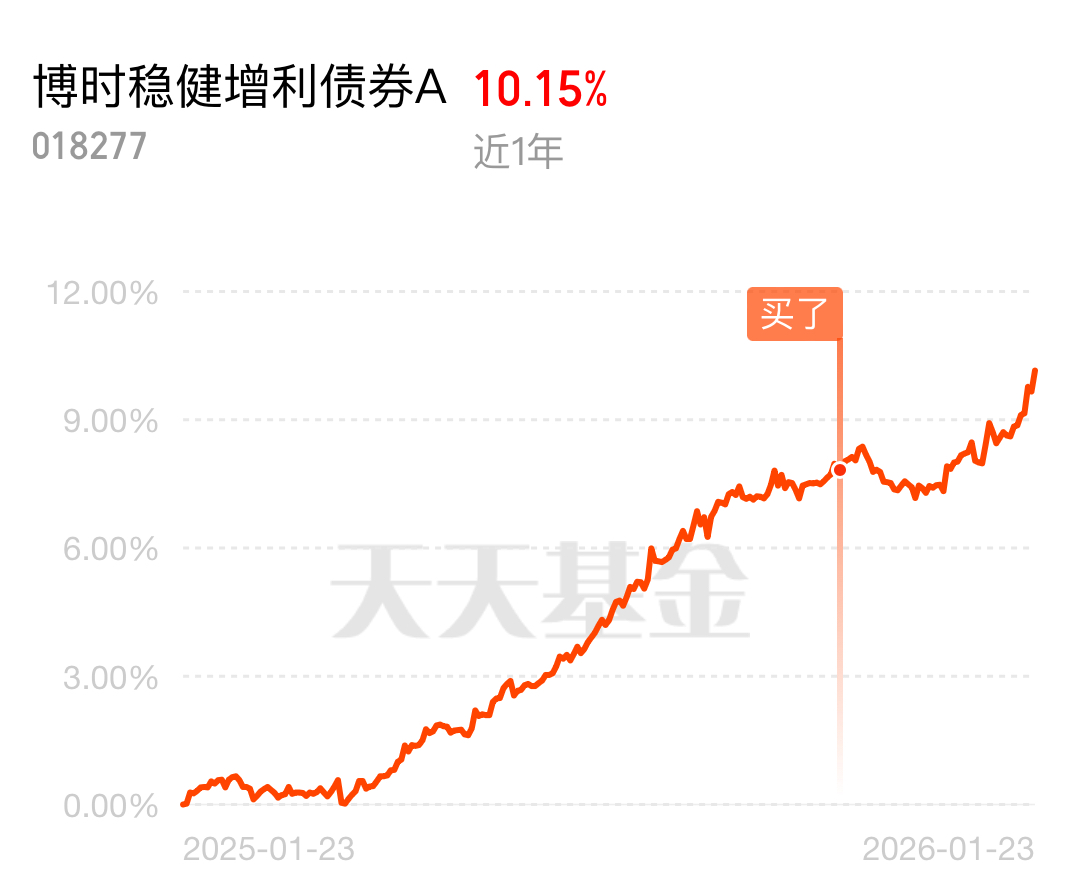 债市不跌份,股市能赚钱,正是固收+大展身手的时候。$博时稳健增利债券A$ 债市底子打得牢,股票部分又精准踩中了市场节奏,上周五猛收了45个蛋,今年以来收益2%+,近一年涨幅稳超10%了,长跑能力很值得信赖。近期国新办发布会上,央行明确表示今年降准降息还有一定空间,一方面金融机构平均法定准备金率约6.3%,降准仍有余地;另一方面,人民币汇率稳定、美元处于降息通道,汇率对降息的掣肘不强。这个消息直接给市场吃了一颗定心丸,也让债市的宽松预期持续升温。对于这基来说,政策宽松意味着利率下行,债券价格上涨,净值自然也会跟着提升。而且央行的结构性降息已经落地,后续如果再有降准降息政策出台,这只基的债券部分收益还能再上一个台阶。更让人惊喜的是这只基的权益仓,基金经理的选股眼光真的太绝了!最新持仓里,嘉友国际和国泰海通这两只股表现很亮眼,嘉友国际作为跨境物流行业的龙头,近期随着全球贸易复苏,跨境物流需求持续增长,公司的业务量和业绩都迎来了快速增长,股价近期涨幅很可观;国泰海通则是券商板块的优质标的,近期市场交投活跃,券商的经纪业务收入大幅提升,加上投行项目密集落地,公司的盈利能力持续增强,未来收益可期!#暖阳创作计划#