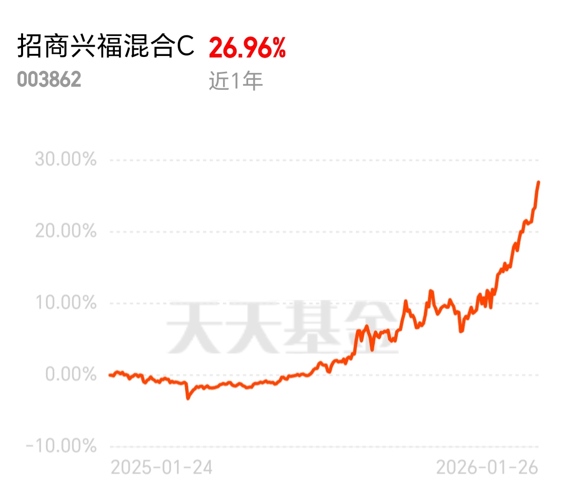 想找昨天权益普跌时还大涨 1% 的产品?看重仓有色的偏债混就对了,招商兴福混合 C 表现超棒,近一周 4.46% 的涨幅,近 1 年 26.96% 的收益,长期短期都能打。