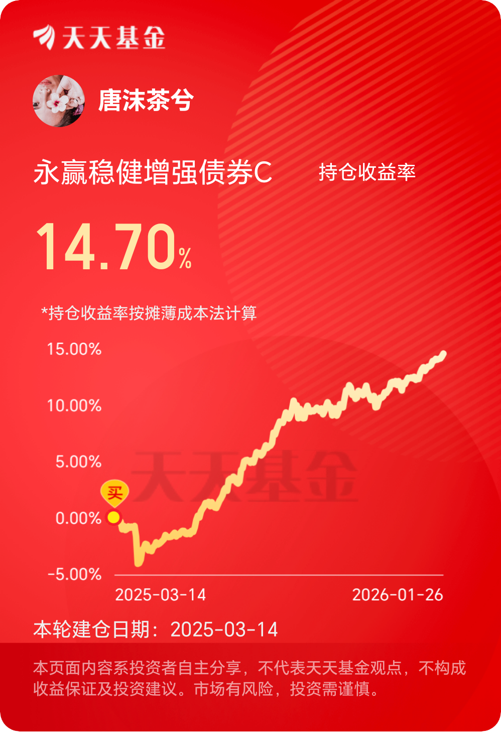 震荡市里,能涨抗跌的特性显得尤其有用。$永赢稳健增强债券C$ #晒收益#
