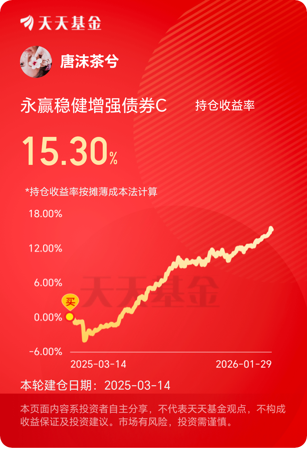 $永赢稳健增强债券C$长期趋势这么好,跌了就补呗