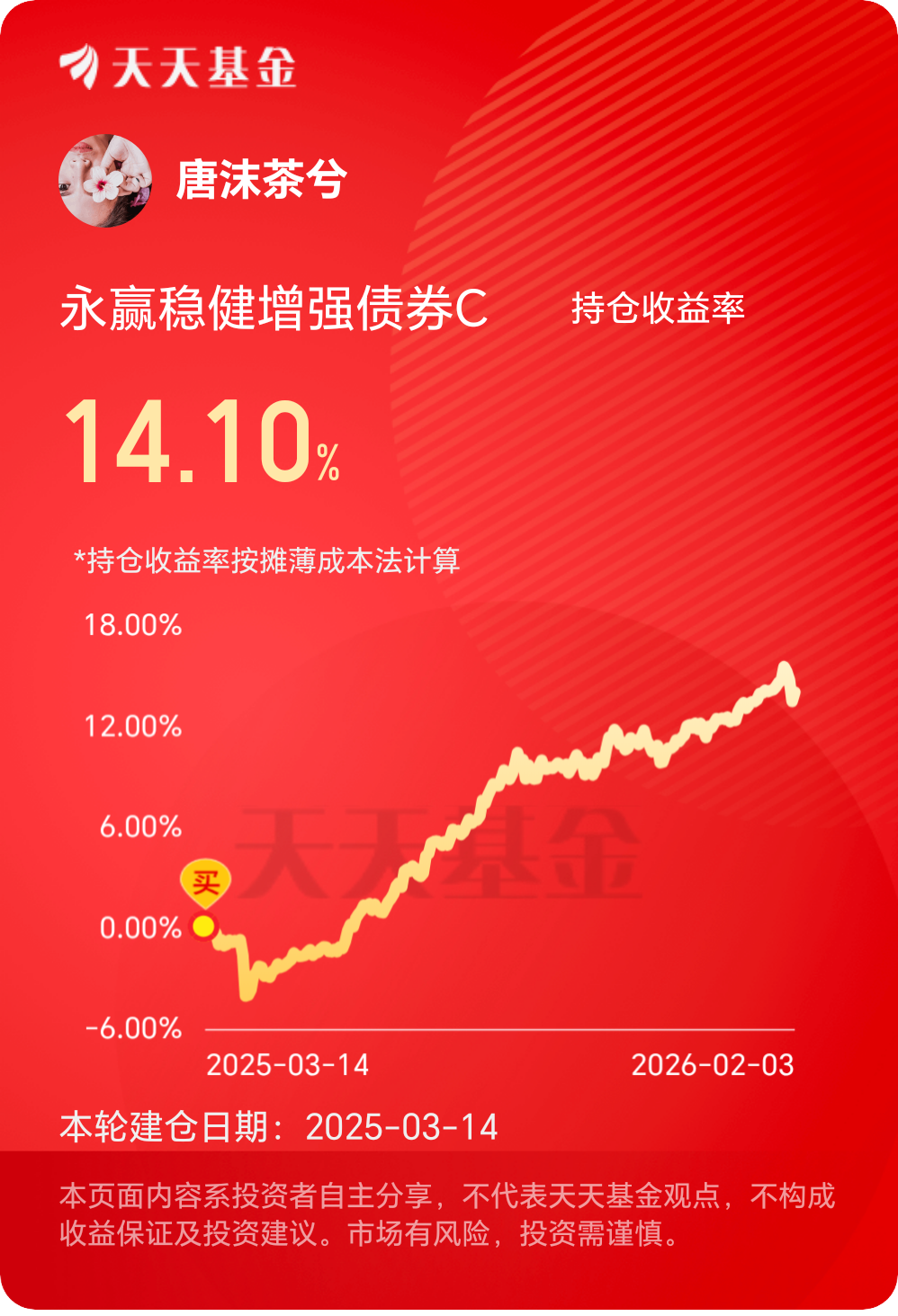 长期涨多跌少,持有压力小不大的$永赢稳健增强债券C$ #晒收益#