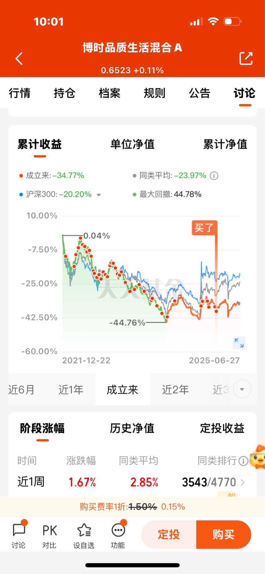$博时品质生活混合A$姚哥,如果有缘的话看看我的定投,曾经一直看好你的,很怀疑和