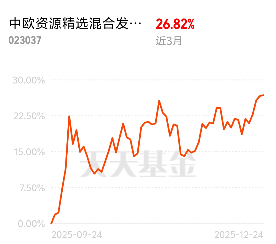 资源赛道热度回升,短期配置机会来了,中欧资源精选混合发起 C 近 3 月 26.82%,聚焦智能电网、AI 算力急需材料,长期有供需缺口支撑,在周期资源类基金中排名靠前。$中欧资源精选混合发起C$