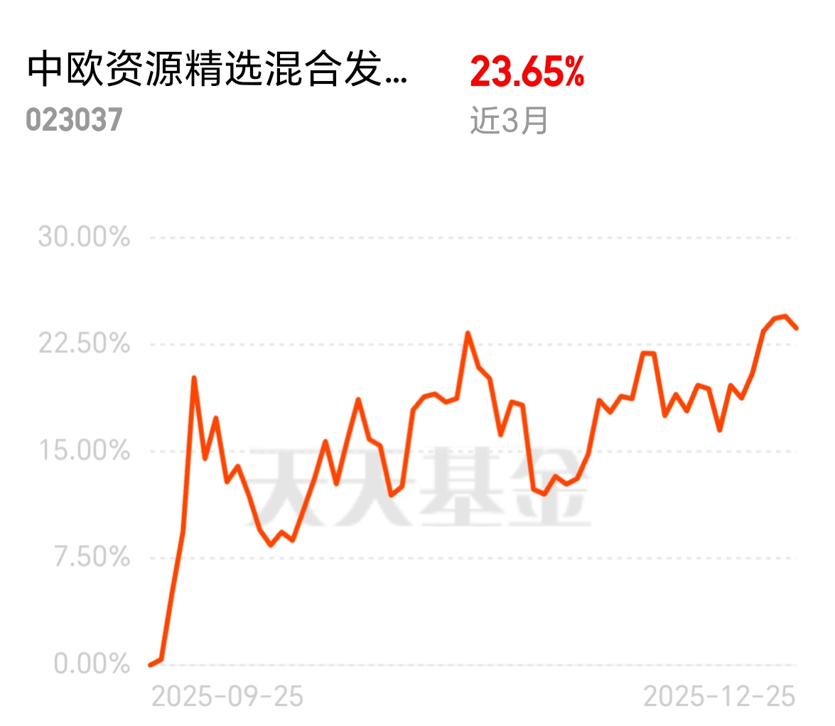 科技股波动加大,周期资源类基金靠扎实基本面脱颖而出。中欧资源精选混合发起 C 近 3 月 23.65%,赶上白银价格火爆上涨,重仓工业金属板块直接受益,基金经理主动把控节奏,叠加政策利好,配置价值凸显。$中欧资源精选混合发起C$