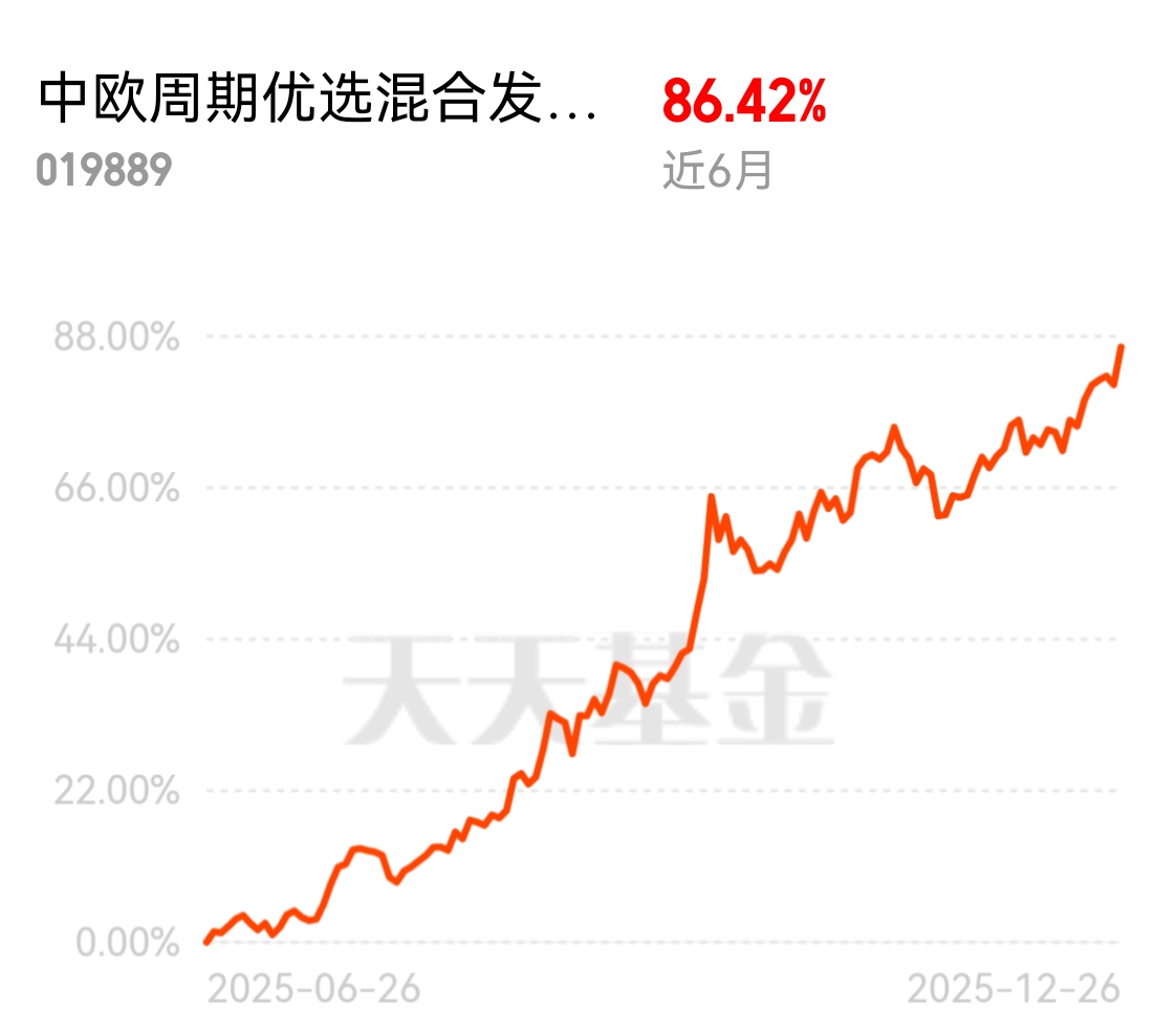 宜春采矿权注销 + 需求爆发,锂价涨势停不下来!中欧周期优选混合发起 C 精准把握供需逻辑,同类中持仓质量更优,近 6 月涨 86.42%,周期基金里的赚钱能手。