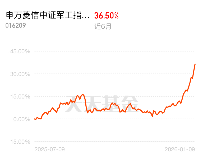 军工这波涨得有理有据,特朗普加码军费 + 商业航天爆发,十四五交付关键期产能拉满。申万菱信中证军工 C 近 6 月涨 36.50%,今天估值近 4 个点,远超同类平均,跟踪指数精准不脱节,后续上涨有支撑,我不着急卖。