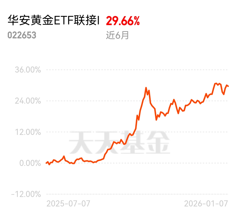 $华安黄金ETF联接I$ 近半年涨 29.35%,费率最低,每年少扣的钱都变收益,长期持有更划算