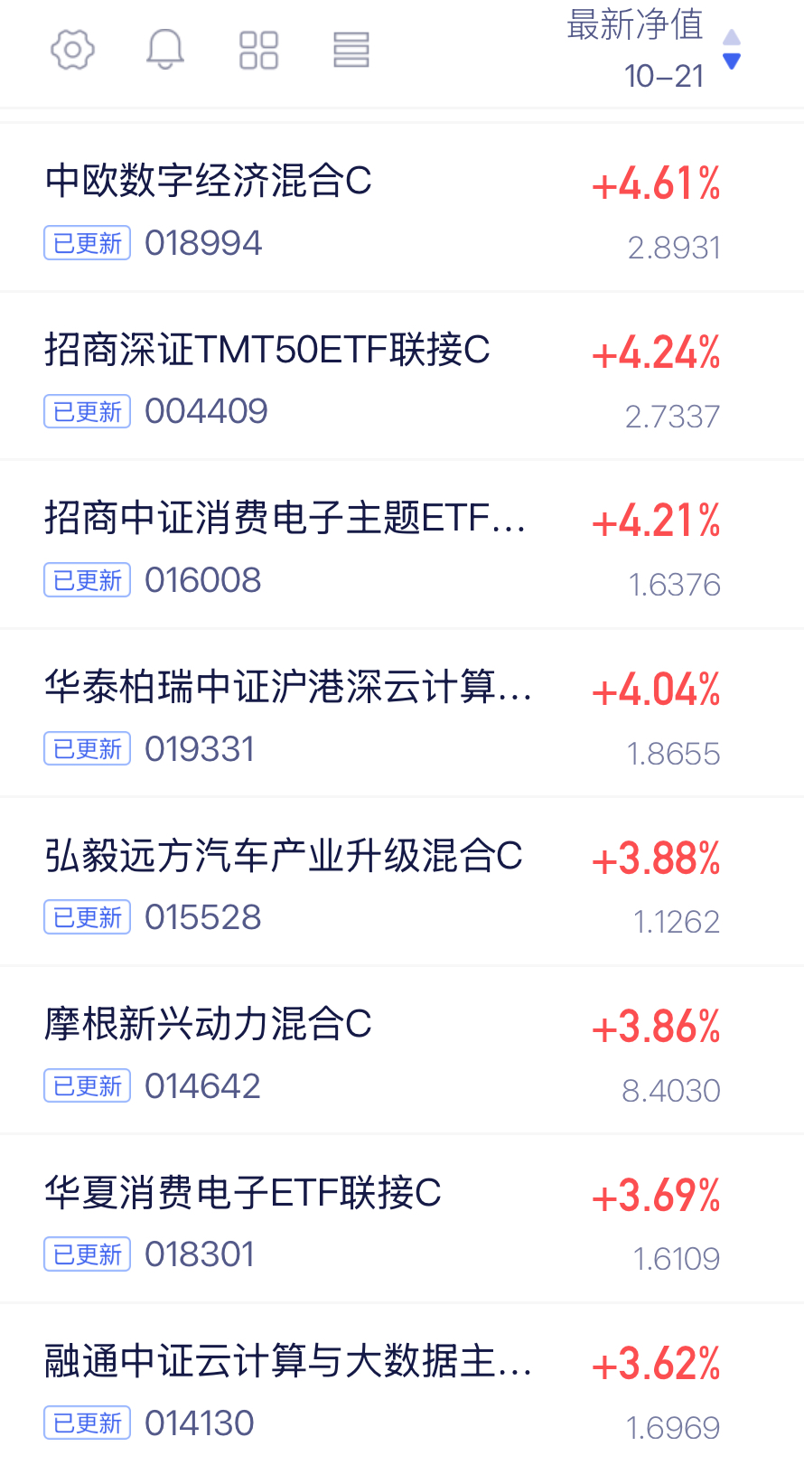 CPO爆发!$中欧数字经济混合发起C$ 今天收涨4.91%,近六个月涨幅104.92%这个反弹真不是随便说说了,除了站对风口,跟紧行情调仓能力还是要有的。昨天逢反弹减仓的真的要拍大腿了,毕竟连跌之后的第一个反弹日也是主力洗盘的好时机,昨天能忍住不卖的少之又少!今天还不错,回调下来一些空间,短期我还是看涨的!