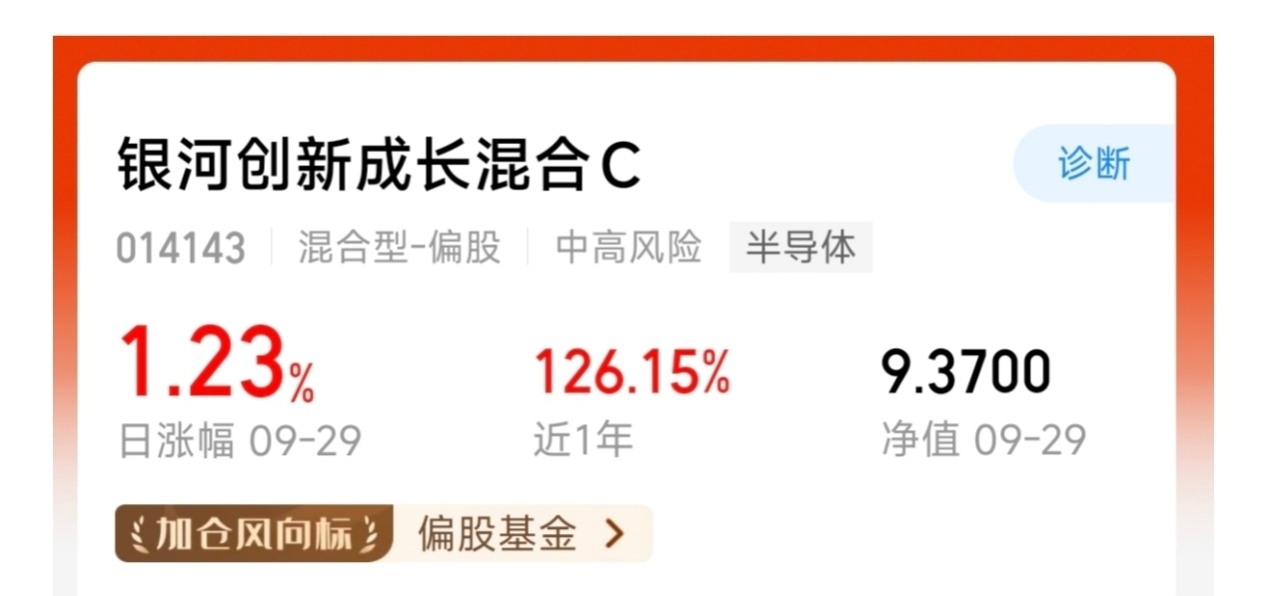 今天市场继续走强,科技板块依然是资金关注的重点。我注意到$银河创新成长混合C$ 今天涨了1.23%,表现不错。最近科技股确实比较活跃,不少相关基金都有不错的表现。