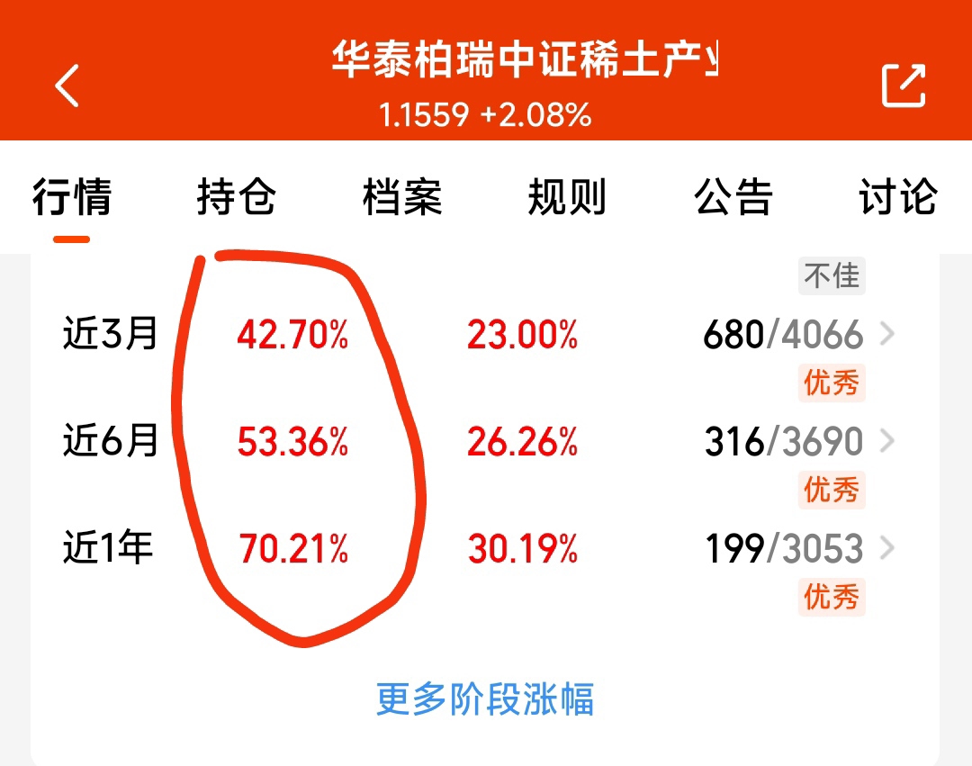 早上被稀土消息刷屏了,开盘就涨4%。$华泰柏瑞中证稀土产业ETF发起式联接C$ 今天涨4.84%,近三个月42.70%,这个政策对国内企业真是及时雨。