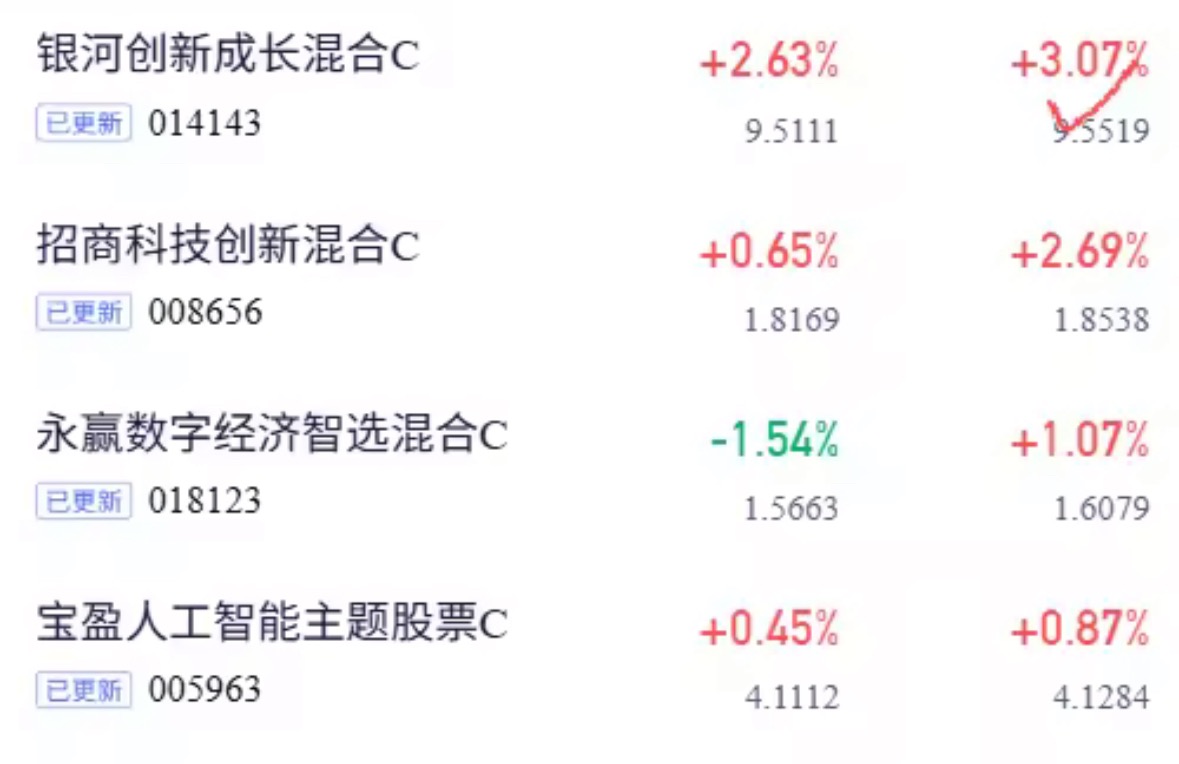 $银河创新成长混合C$ 今天涨幅3.07%,今天半导体大涨,太猛了,低开那么多还能拉回来