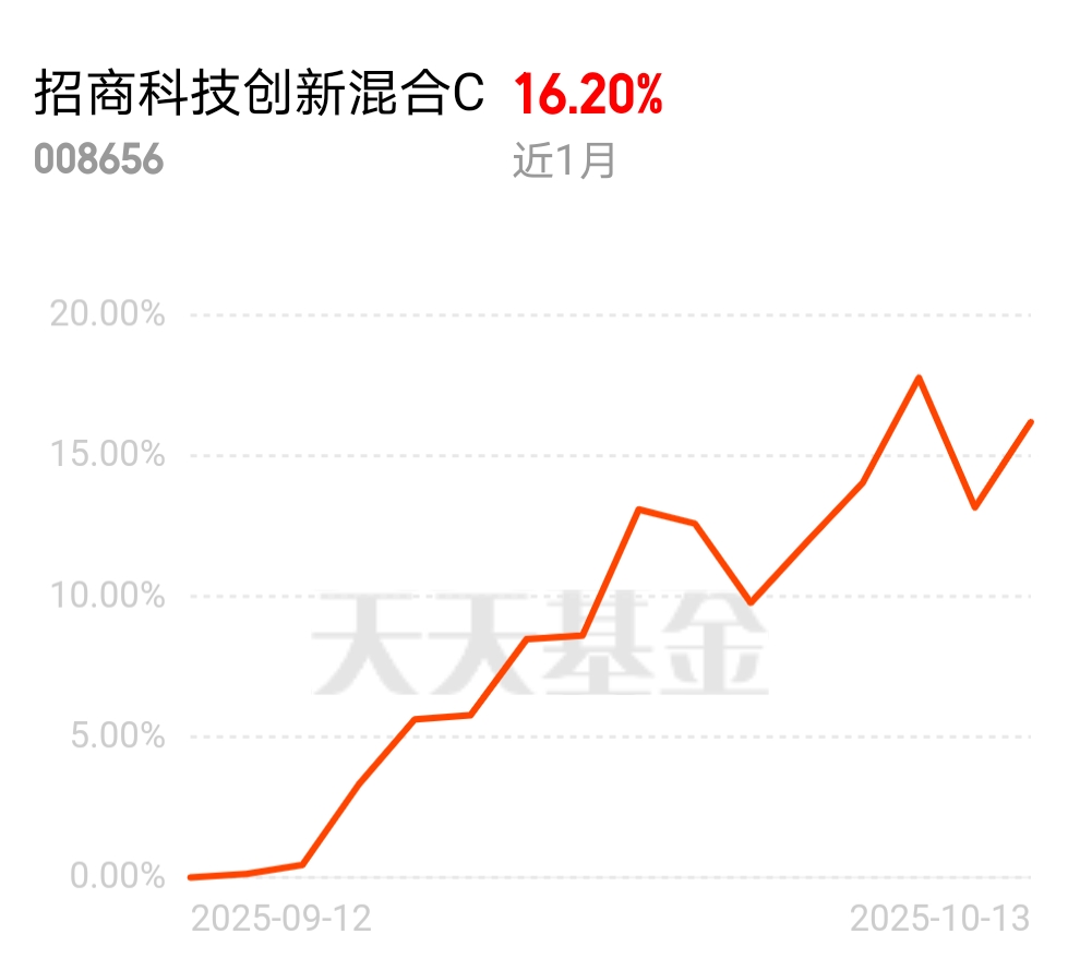 今天市场里科技赛道成了香饽饽,各个细分领域都在冲高,行情特别好。招商科技创新混合C近一个月涨16.20%,收益能打,基金经理调仓抓得准,该上车的时候别犹豫。