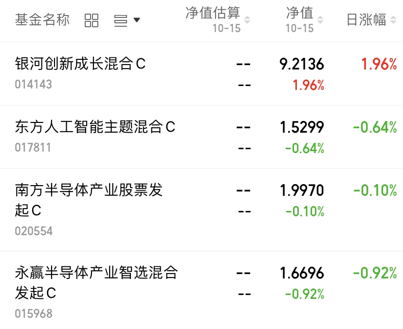 $南方半导体产业股票发起C(OTCFUND|020554)$下跌0.1%,