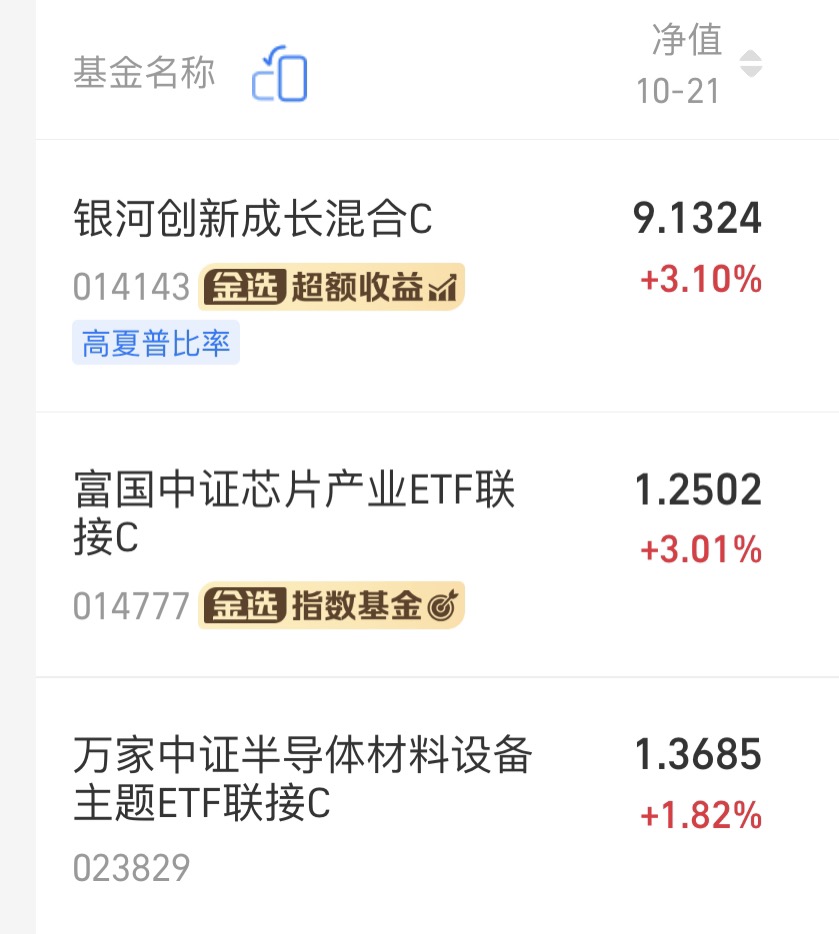 今天科技大涨,昨天涨势一般的半导体今天展开补涨行情,涨幅领先$银河创新成长混合C