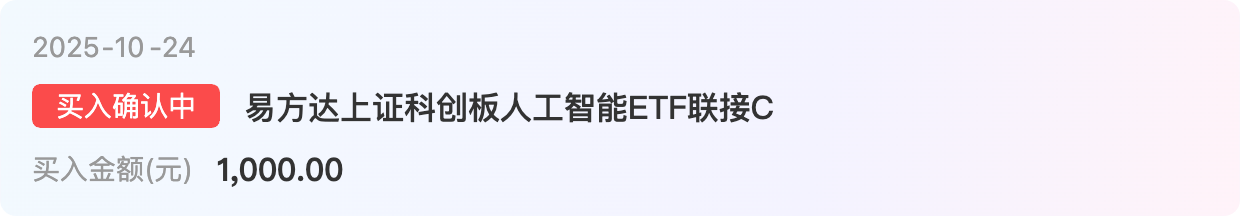 此前持有了易方达人工智能A,今日继续加仓易方达科创人工智能C,可有效补充我的AI持仓,强化对这一核心赛道的配置,把握“科技创新”驱动下的成长机遇。
