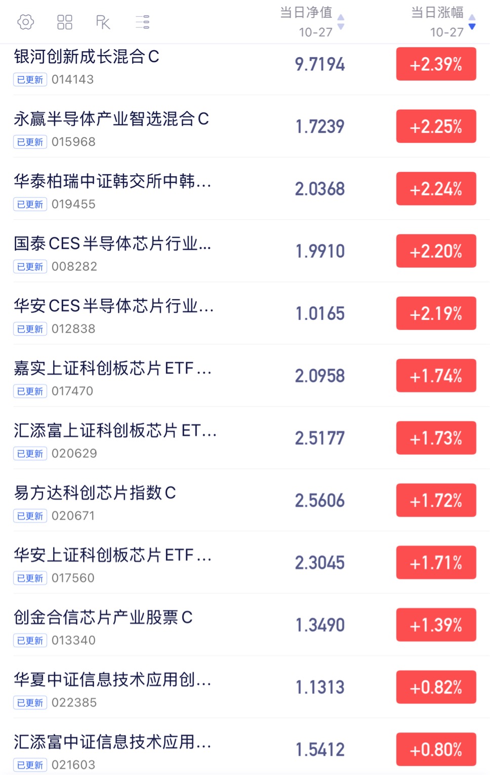 半导体储存芯片科创芯片看过来!银河创新成长混合C今日大涨2.39%!