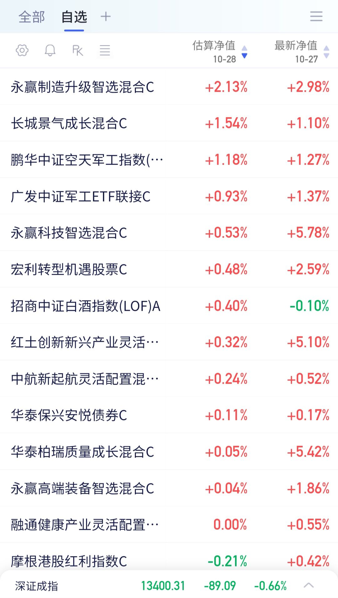 以下是部分基金实时估值:13:45分数据