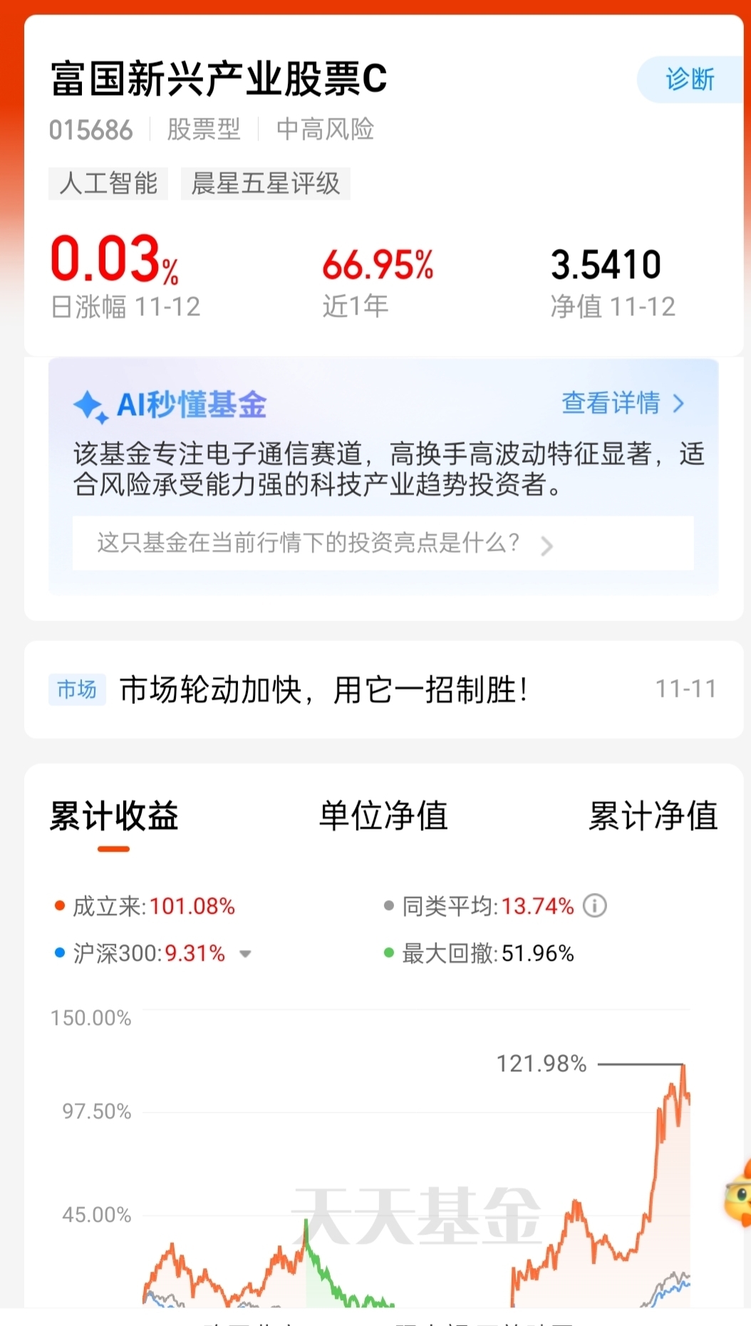 目前把银河创新成长C和富国新兴产业C一起入手,看它扎堆中际旭创、寒武纪这些AI算