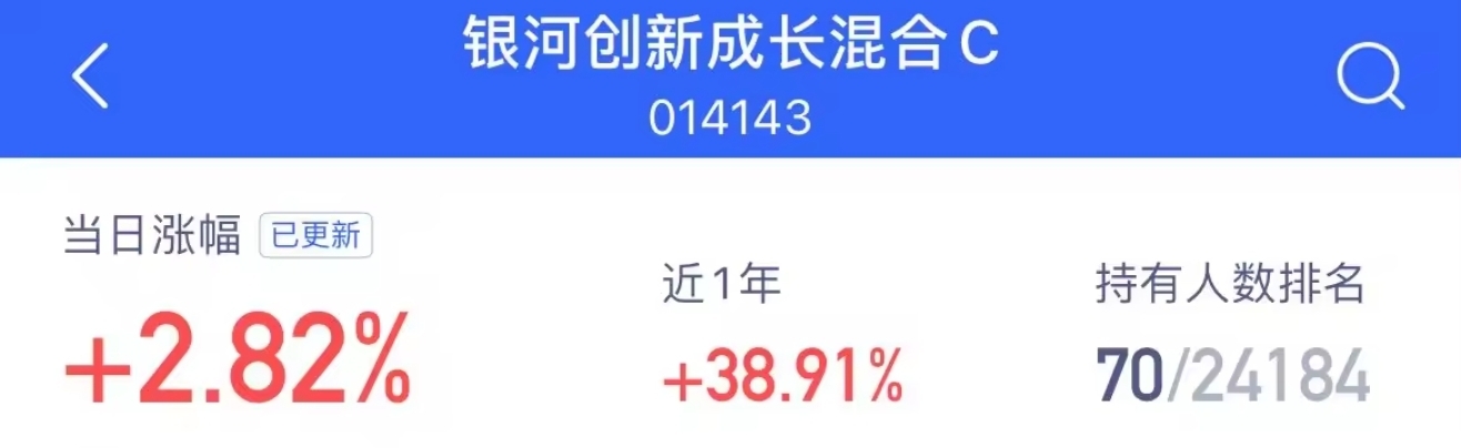 今天权益市场虽然不错但是涨的好的是电池新能源科技还有很多不给力的,不过$银河创新成长混合C$ 今天2.82%表现优秀混合基能打能抗我继续看好!