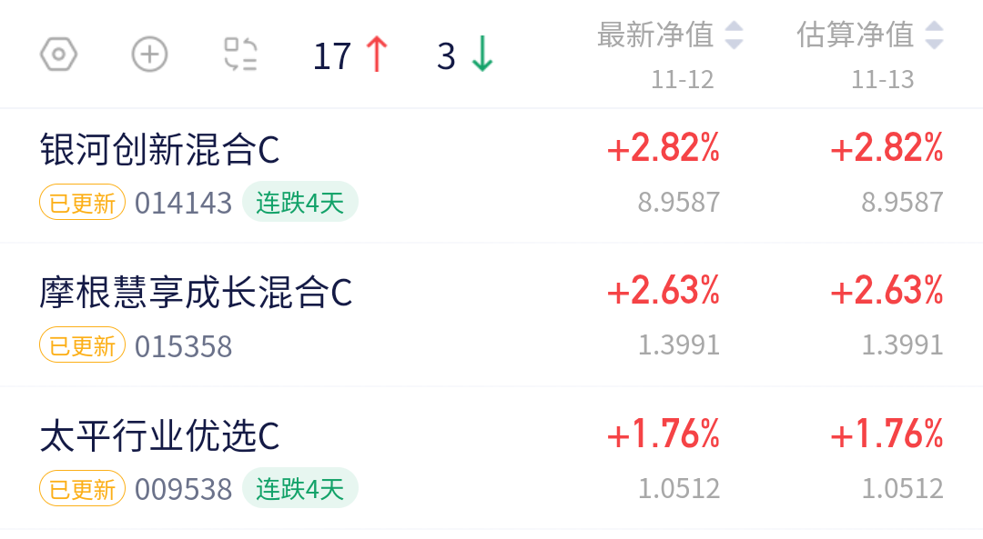 $银河创新成长混合C(OTCFUND|014143)$上涨2.82%