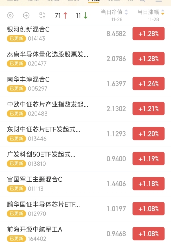 三大指数今天探底回升,前期表现低迷的半导体今天也是迎来了突破。$银河创新成长混合C$ 今日涨幅1.28%。主动的科技混合基金。长期聚焦半导体产业链。同类业绩也是长期做到了优秀。