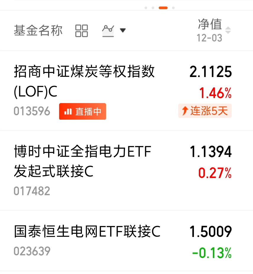 大盘今天回暖上涨,近期市场波动较大,昨天震荡调整,煤炭板块最近表现还不错呢,$招商中证煤炭等权指数(LOF)C$ 昨天涨了1.46%,已经连涨五天了!