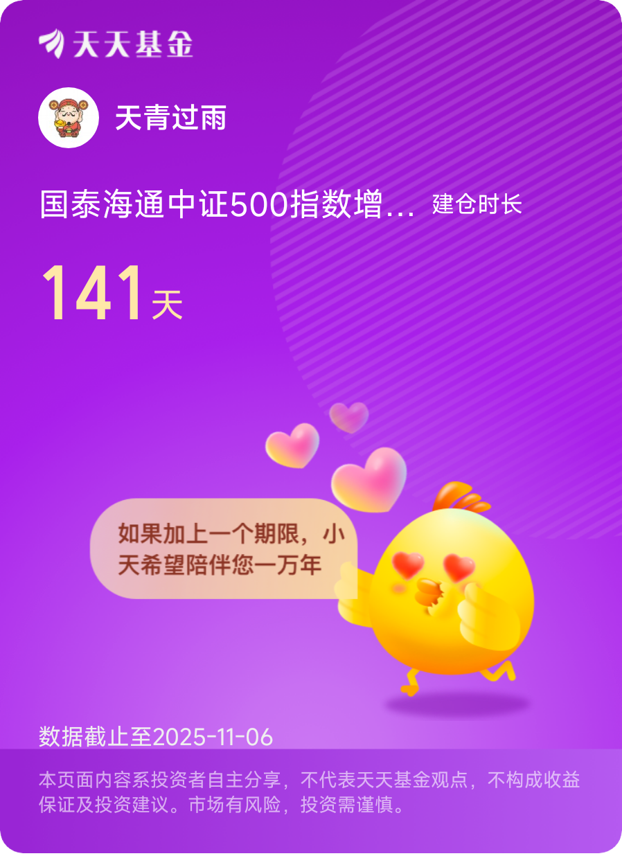 覆盖热门方向还比较均衡,细水长流看长期$国泰海通中证500指数增强C$ #晒收益#
