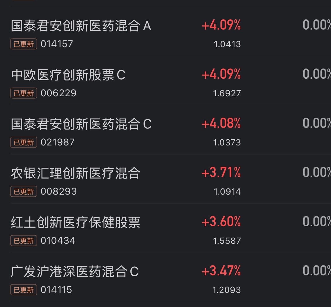 $国泰君安创新医药混合发起A$ 上涨4.09%$中欧医疗创新股票C$ 上涨4.09%$农银汇理创新医疗混合$ 上涨3.71%