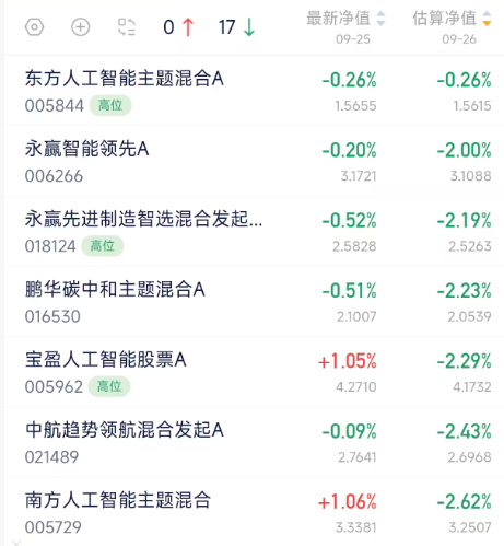 人工智能基金估值盘后检阅,关灯吃面度周末