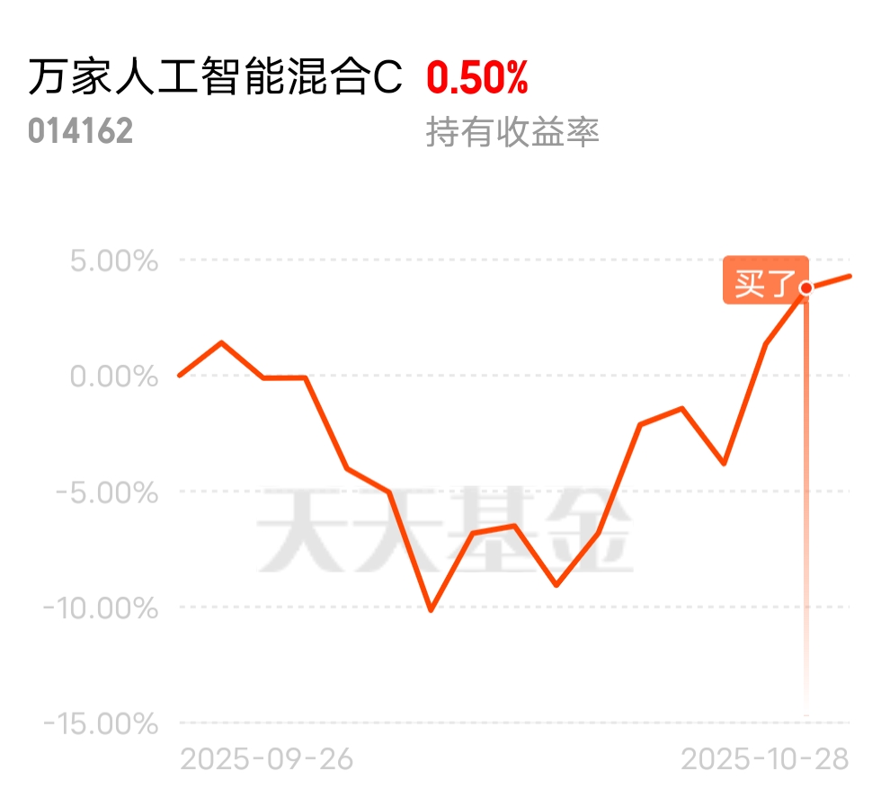人工智能板块弹性十足,主线优势地位明确,更应该紧紧抓住。$万家人工智能混合C$