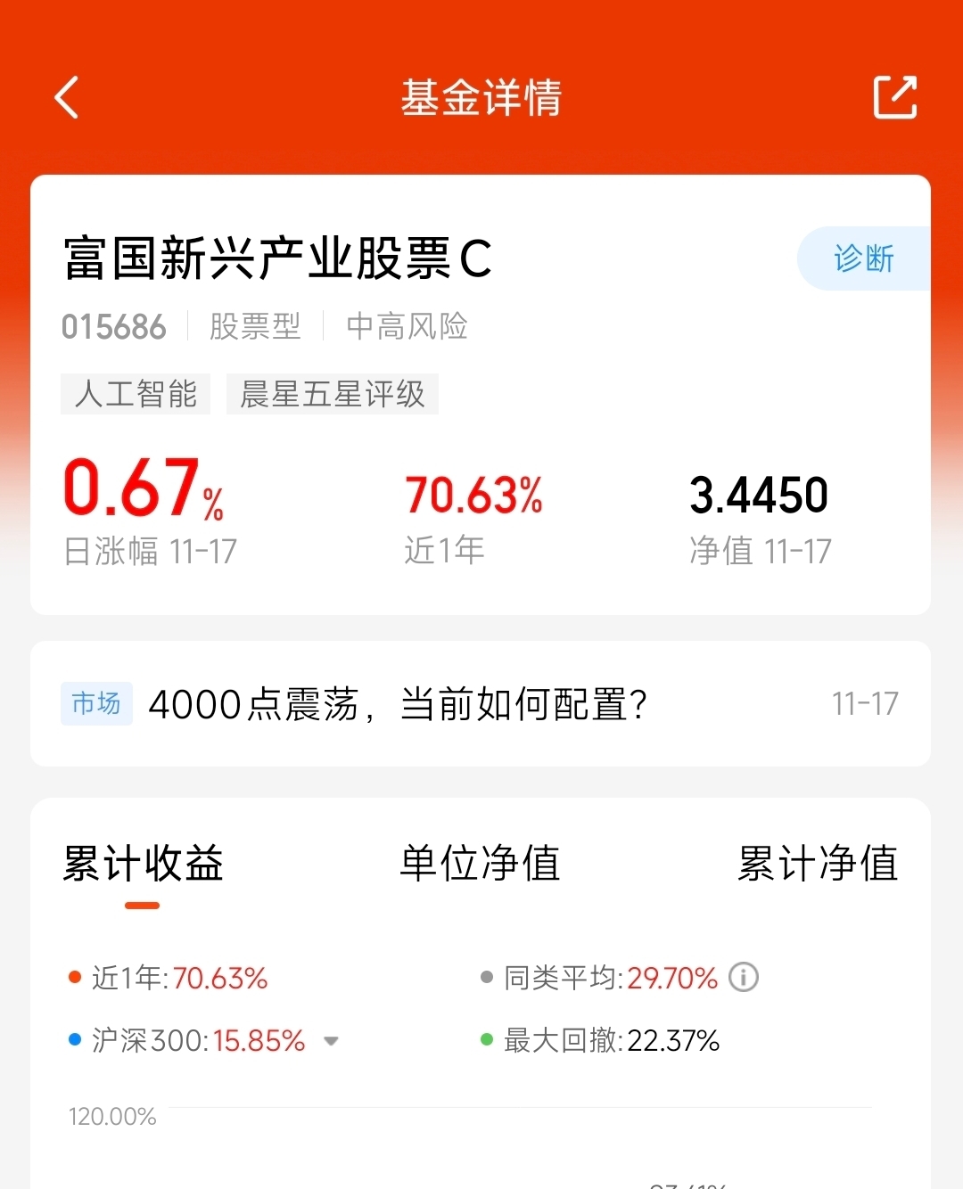 手里也在布局万家人工智能C和富国新兴产业C,后者扎堆中际旭创、寒武纪这些AI算力核心标的,近一年涨了71%,99亿保有量跑得又稳又快。