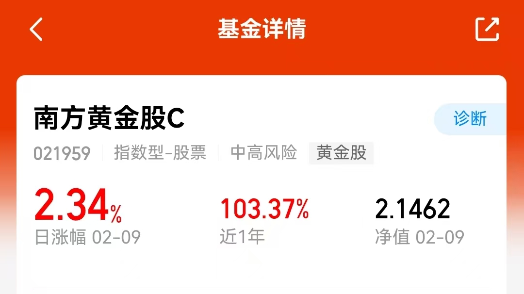 这几天金价又开始往上走了,感觉第二波行情要来了。想买黄金又嫌实物金麻烦的,可以看看这个$南方中证沪深港黄金产业股票指数发起A$(021958)。它不用像买金条那样还得找地方存,也不用像买股票那样挑来挑去,直接打包买整个产业链。关键是门槛低,10块钱就能上车,比金店买首饰划算多了。最近一个月它就涨了15%,表现挺亮眼。现在上车还来得及,别等涨上去了再后悔。听说有国际大行都看高金价到五千八了,空间还大着呢。#春节你是持币过节or持基?#