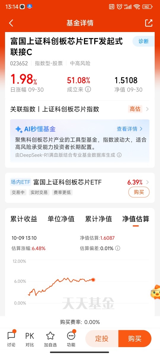 今天芯片继续爆发,富国科创芯片目前估值6.48%太给力了$富国上证科创板芯片ETF发起式联接C$