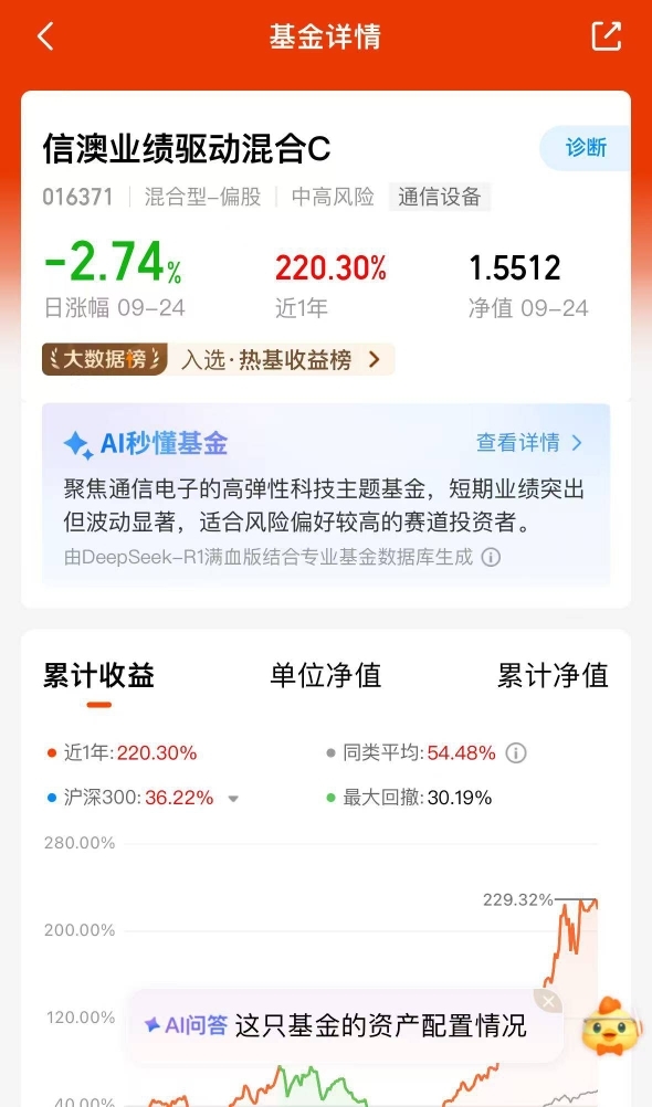 信澳业绩驱动混合C高弹性特质尽显!近一月21.99%超额收益领跑科技基,近一年2
